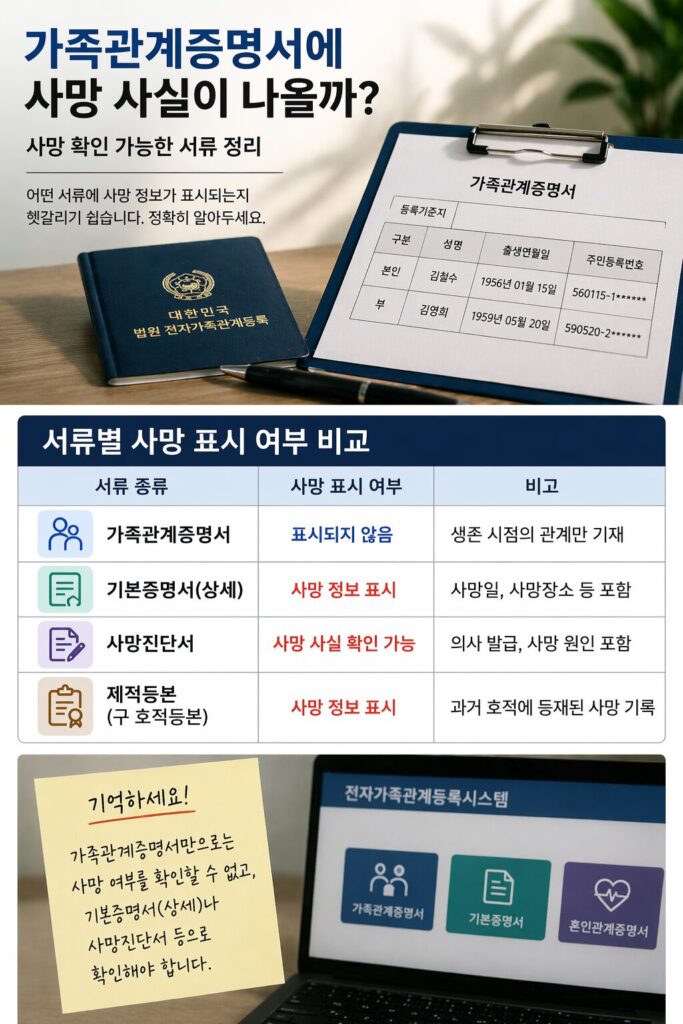 | 입양관계증명서 | ✅ 사망 기재 가능 (부모·자녀) |